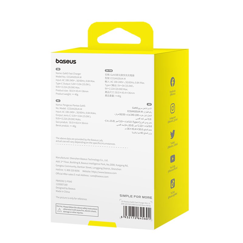 - Product Name: Baseus GaN fast charger (mini) 1C 20W UK