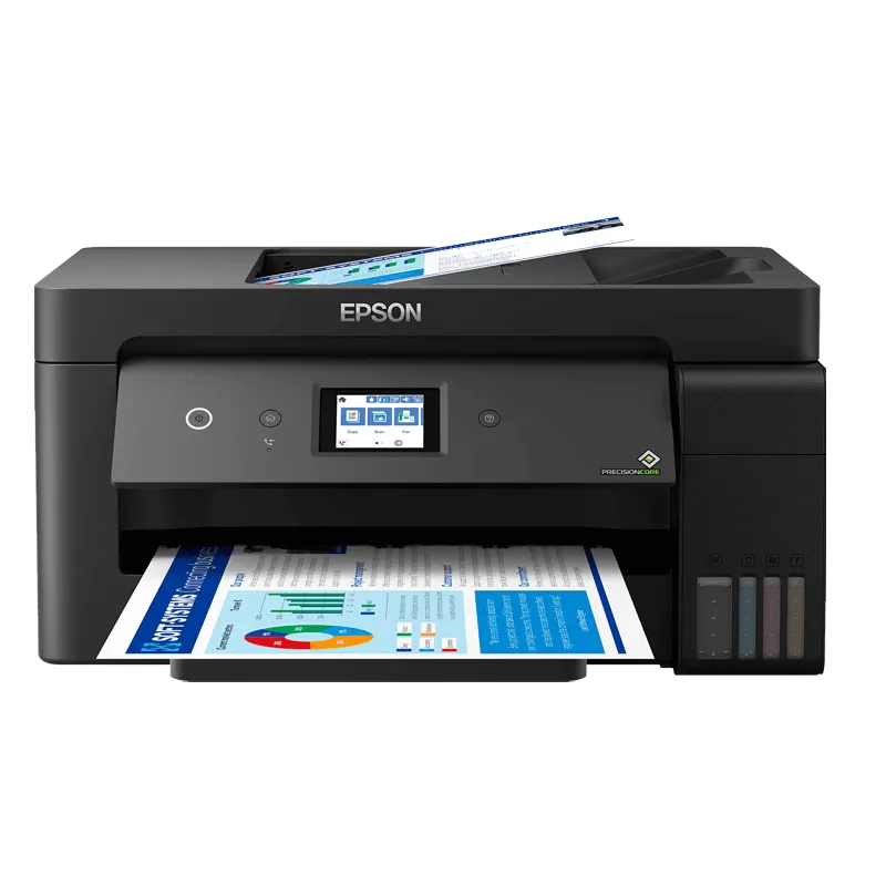 Featuring Epson’s PrecisionCore printhead, the L14150 offers sharp detail (4800 × 1200 dpi) and fast speeds: up to 17 ipm for A4 simplex (black), and even higher draft speeds.Auto-duplex printing (2-sided) helps save paper, and the flatbed scan supports legal and folio sizes.