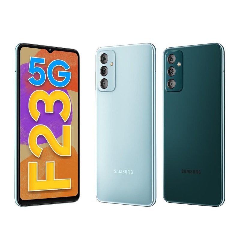 The Samsung Galaxy F23, handset is powered by an Octa-Core, Qualcomm SM7225 Snapdragon 750G 5G (8 nm) processor with a Mali-G57 MC2 GPU. The handset has 2 variants on the market in terms of space: 6GB RAM and 128GB of internal storage You can expand the memory space via the microSDXC. The Galaxy F3 runs on Android 12 and all this is powered by a 5,000 mAh battery. It also has a triple rear camera setup consisting of 50MP + 8MP+2MP. At the front, an 8MP front-facing camera is accommodated in the top water drop notch. The phone comes in the colors Aqua Blue, and Forest Green.